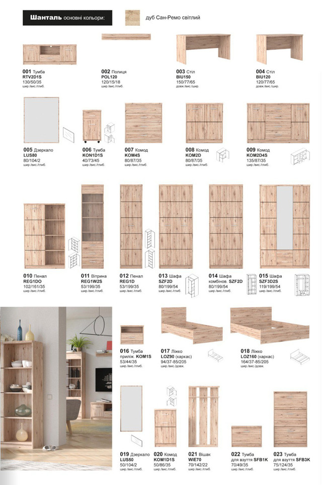 Модульна система Шанталь Gerbor Дуб сан-ремо світлий