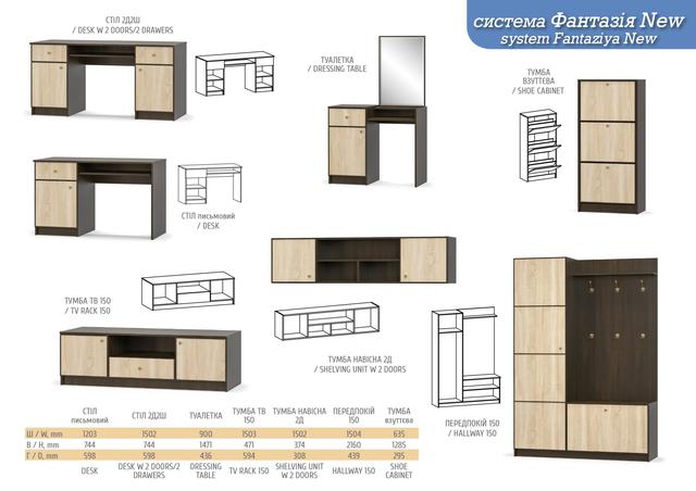 Дизайн меблів Фантазія створений за останніми напрямками в оформленні інтер'єру. Контрастні кольори корпусу і фасадів створюють особливий настрій у кімнаті.