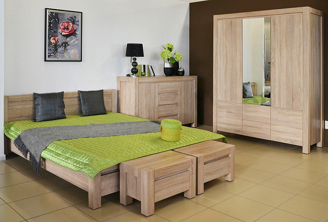 Модульна спальня Agustyn - сучасна колекція від фабрики Black Red White. Випускається в кольорі: дуб сонома (dąb sonoma). Меблі виготовляється з ламінованої ДСП. Колекція Agustyn поєднує в собі прості строгі форми і модні забарвлення, що робить цю меблі доречною як у сучасному, так і класичному інтер'єрі єрі. Відсутність ручок на фасадах і виражена текстура дерева надають привабливість, а висока функціональність і якість виготовлення роблять серію Agustyn виключно практичною.