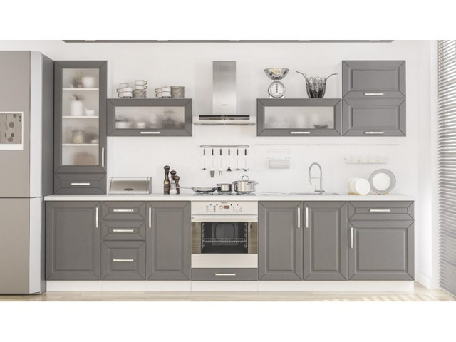 Однією з переваг кухні Гамма супермат є якісна та сучасна фурнітура, на верхніх шафках встановлені газові підйомники, на нижніх шухлядах встановлені метабокси, що є дуже зручним у використанні. Різні модульні секції та кутові закінчення дають можливість підібрати кухню різних розмірів.