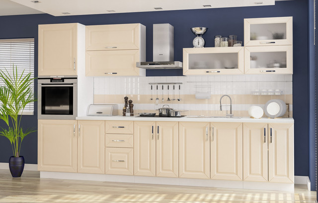 Кухня Гамма супермат виготовленна в сучасному стилі з матовими МДФ фасадами. Корпус виготовленний з ДСП 16 мм в білому кольорі. Гарнітур пропонується в декількох кольорових варіантах: винний, сірий, бежевий, зелений. Цікавою особливістю кухні є те, що в одному комплекті можна скомбінувати декілька кольорів одночасно.