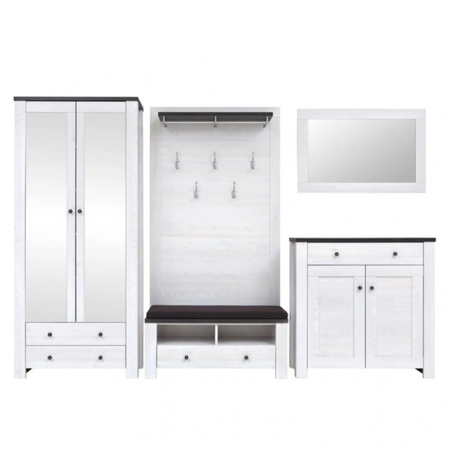 Меблі Антверпен 2 виробництва української фабрики Gerbor - стильна колекція, що привертає увагу цікавою текстурою. Випускається в кольорі "ясен сніжний / дуб морений". Виготовляється з ДСП з елементами МДФ. Завдяки світлому відтінку виглядає стильно і легко в інтер'єрі. Контрастний колір кришки корпусу і темні делікатні ручки надають динамічності. Меблі Антверпен 2 Gerbor дозволяють облаштувати затишну і комфортну вітальню, спальню і передпокій.