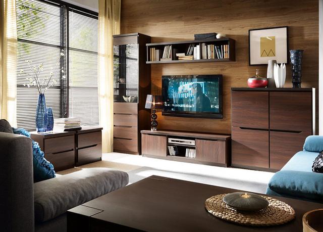 Меблі Джулі виробництва фабрики Гербор - чудова модульна система з перед очима текстурою деревини. Виготовляється в насиченому теплому кольорі «акація mali бронза». Відрізняється строгими геометричними формами і нестандартним рішенням ручок, що підкреслює незвичайність елементів. Меблі Джулі Гербор знайдуть своє місце в будь-якому приміщенні.