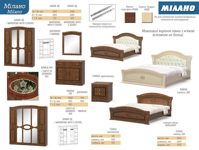 Спальня "Мілано" - класичні меблі з особливим характером. Може здатися, що даний гарнітур чисто класичні меблі. Насправді, спальня виконана в стилі неокласика.