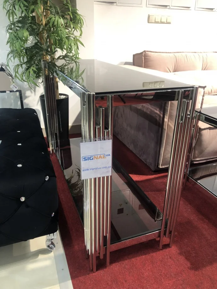Сучасна консоль Fossil C від Signal - це модний оригінальний предмет меблів, який додасть стилю будь-якого інтер'єру. Він стане прекрасним доповненням квартири, оформленої в гламурному стилі. Верхня і нижня полиця консолі виготовлені з загартованого димчастого скла, міцного і легкого у догляді. Вся конструкція заснована на стабільній хромованою рамі, зробленої з особливою ретельністю. Поєднання хромованою основи і димчастого скла створює надзвичайно елегантний предмет меблів.