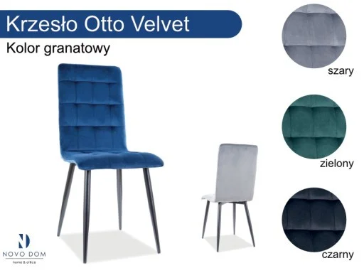 Стілець OTTO Velvet - цікава пропозиція для сучасної їдальні, вітальні або офісу. Комфортне сидіння і спинка крісла оббиті м'якою тканиною з елегантною прострочкою. Оббивна тканина дуже приємна на дотик і злегка опалесцирует. Основа меблів - метал, пофарбований в чорний матовий колір. Висока спинка забезпечує зручну опору для спини, що робить меблі надзвичайно зручної. Універсальна форма добре підійде і в молодіжній кімнаті.
