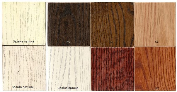 За патинування меблів в кольорі К1, К2, К3, К4, К5, білий доплата 5%.