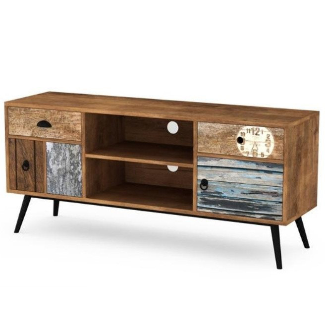 Тумба під ТВ Mezo RTV-1 Halmar - двухдверна тумба під телевізор польської компанії Halmar (Хальмар) з двома висувними ящиками і двома відкритими відділеннями. Виготовлена з ламінованої меблевої плити. Надійний каркас з пофарбованої сталі гарантує стійкість конструкції. На задній стінці корпусу передбачені отвори для проводів.